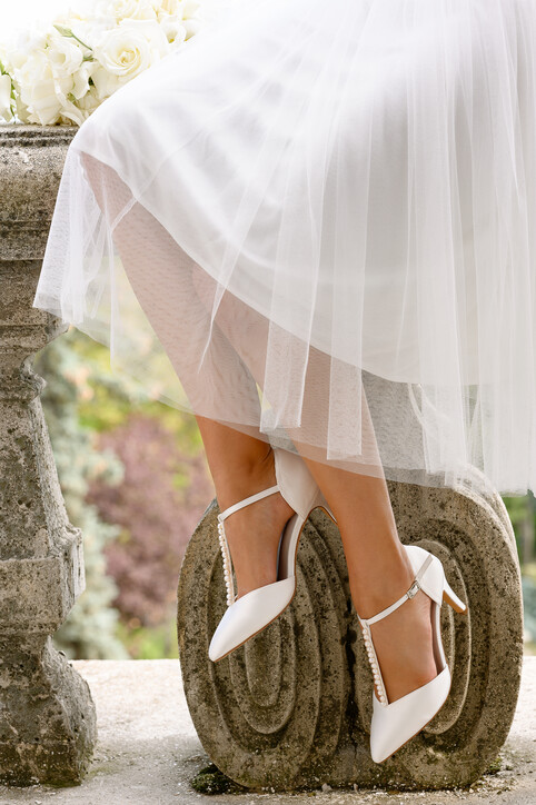 Ker prisegamo na udobje nevest, so naši poročni čevlji izdelani ročno, iz pravega mehkega usnja slovenskega proizvajalca. Čevlji so lahkotni, različnih dizajnov kot npr. poročni sandali, salonarji ali poročne balerinke. Naknadno jih lahko tudi pobarvamo na željeno barvo.